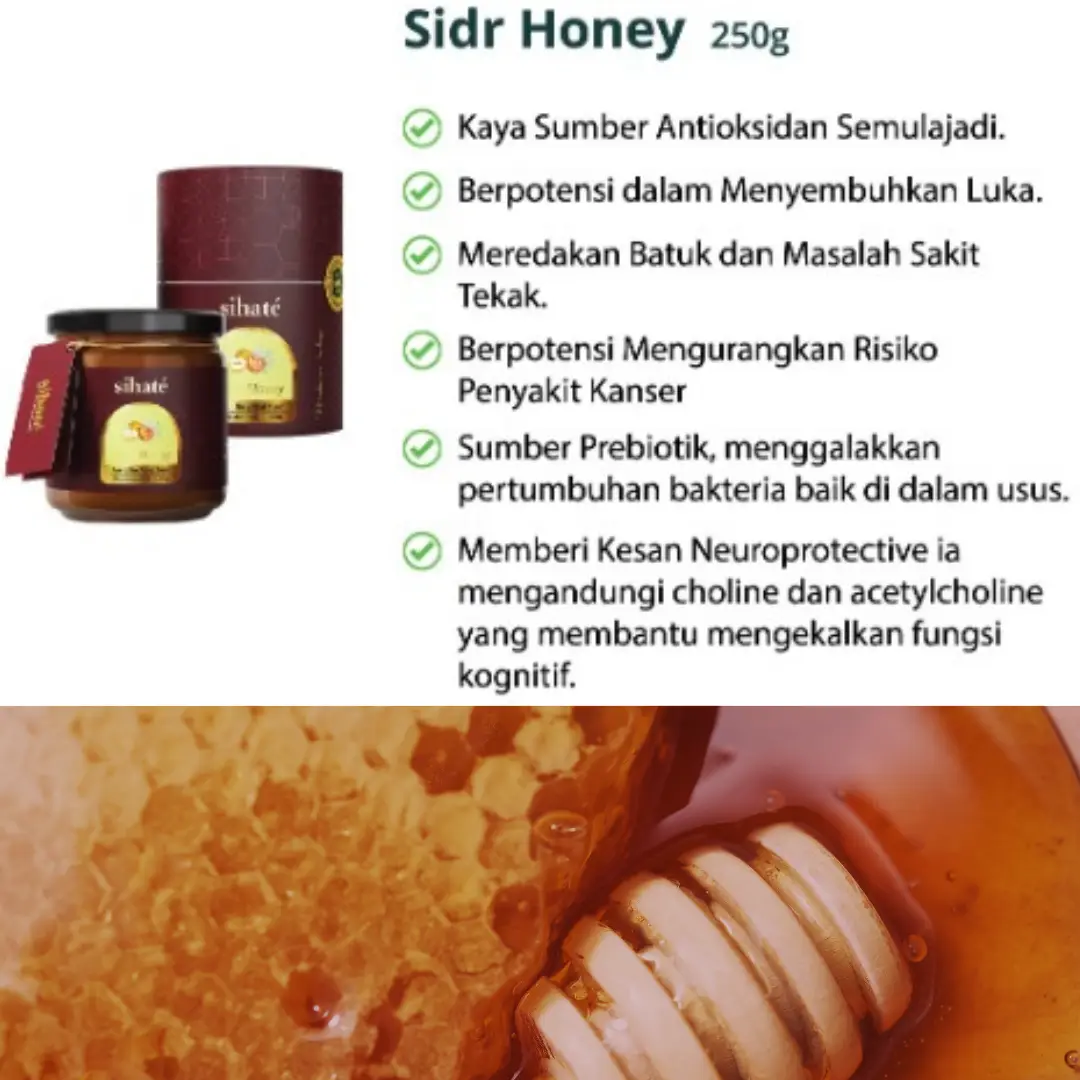 Semua produk keluaran Sihaté adalah asli dan organik tanpa sebarang campuran pewarna, pengawet dan bahan-bahan lain.