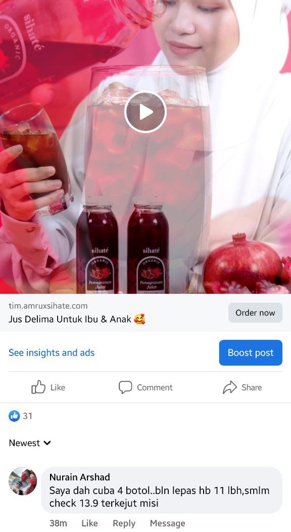 Tapi, sebelum tu kami nak sharekan kegembiraan pengguna selepas minum jus delima sihate’ :