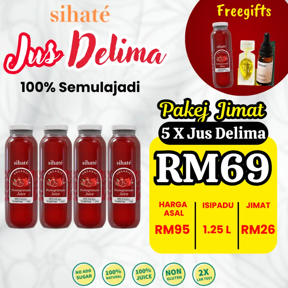 Semua produk keluaran Sihaté adalah asli dan organik tanpa sebarang campuran pewarna, pengawet dan bahan-bahan lain.
